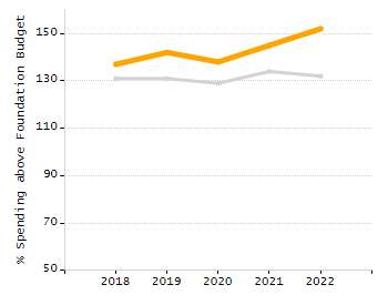 Percent actual net school spending above / under foundation budget