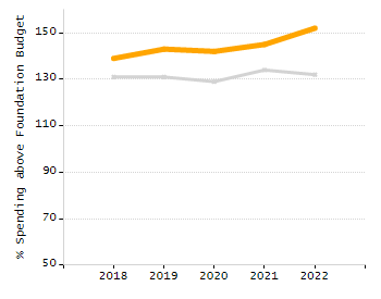 Percent actual net school spending above / under foundation budget