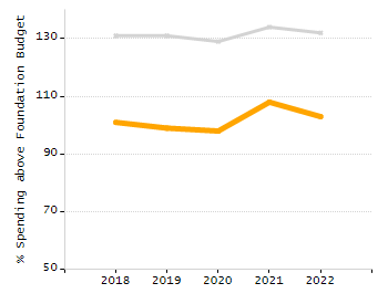 Percent actual net school spending above / under foundation budget