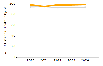 Percentage of students exceeding or meeting expectations