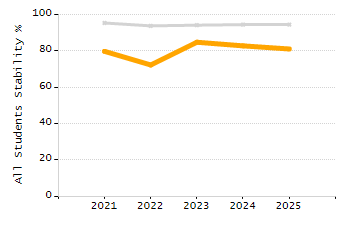 Percentage of students exceeding or meeting expectations