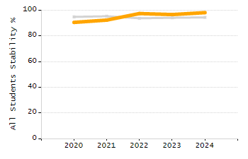 Percentage of students exceeding or meeting expectations