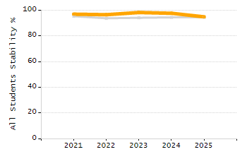 Percentage of students exceeding or meeting expectations