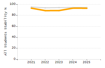 Percentage of students exceeding or meeting expectations