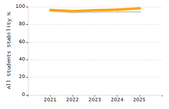 Percentage of students exceeding or meeting expectations