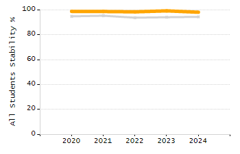 Percentage of students exceeding or meeting expectations