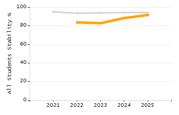Percentage of students exceeding or meeting expectations