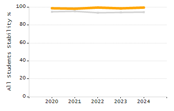 Percentage of students exceeding or meeting expectations