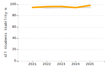 Percentage of students exceeding or meeting expectations