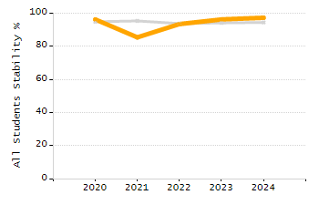 Percentage of students exceeding or meeting expectations