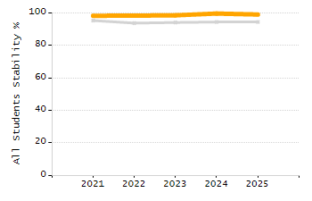 Percentage of students exceeding or meeting expectations