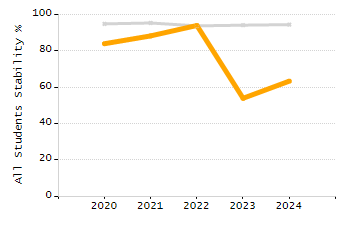 Percentage of students exceeding or meeting expectations