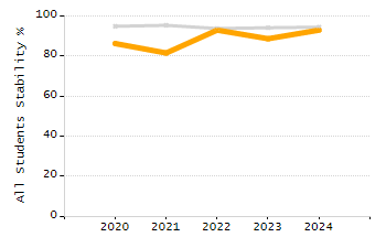 Percentage of students exceeding or meeting expectations