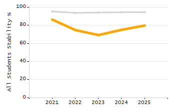 Percentage of students exceeding or meeting expectations